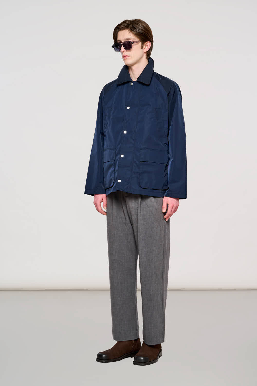 La 0100 Gent Field Jacket è realizzata in esclusivo tessuto Memory, questa giacca nella profonda tonalità Total Eclipse offre una struttura impeccabile che memorizza la forma e resiste alle pieghe, rendendola l'alleato perfetto per il viaggiatore urbano e le giornate in movimento. La silhouette pulita nasconde una funzionalità studiata nel dettaglio, con una chiusura frontale a zip protetta da patta antivento e un collo a camicia che conferisce un'eleganza senza tempo.