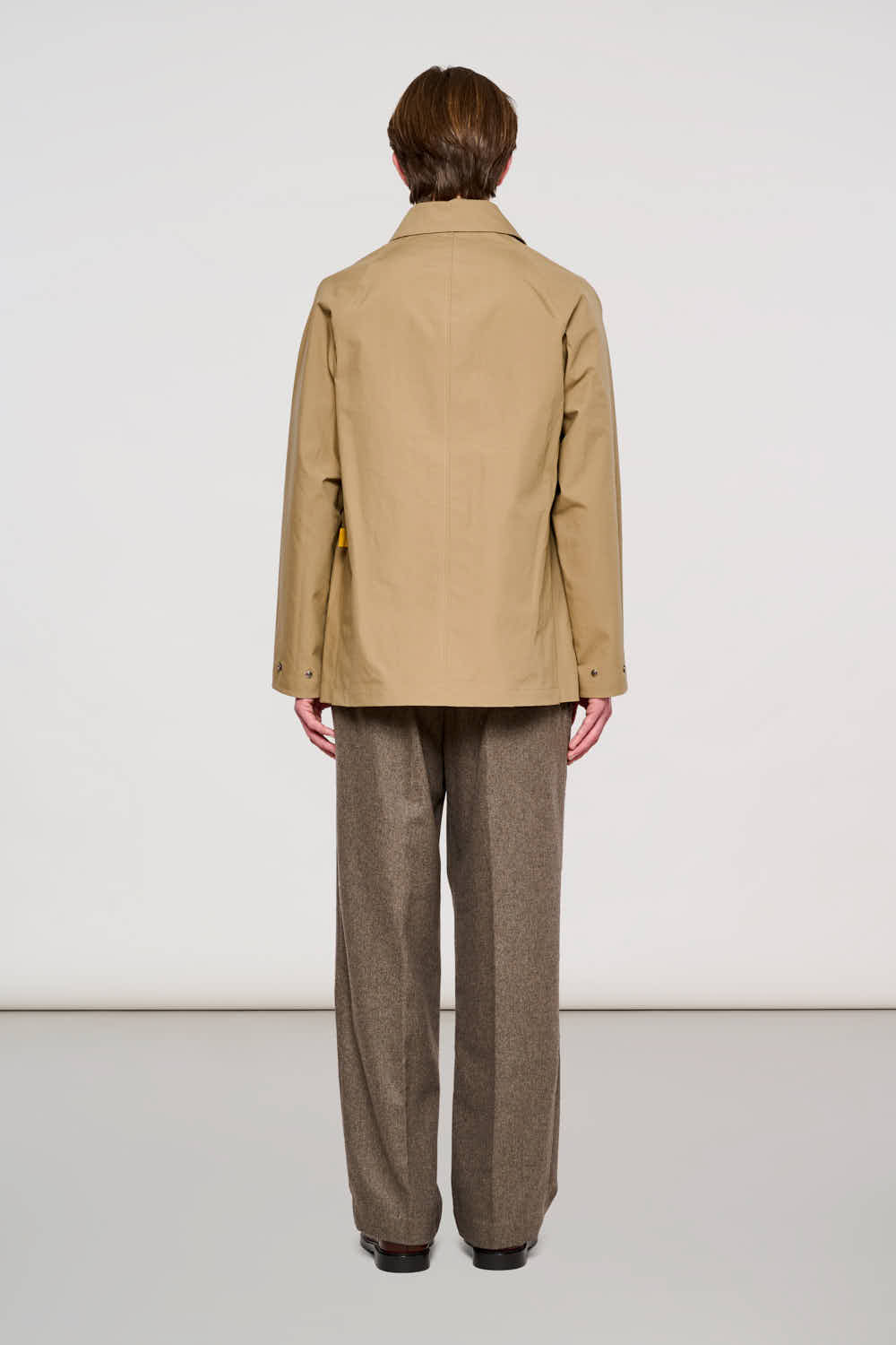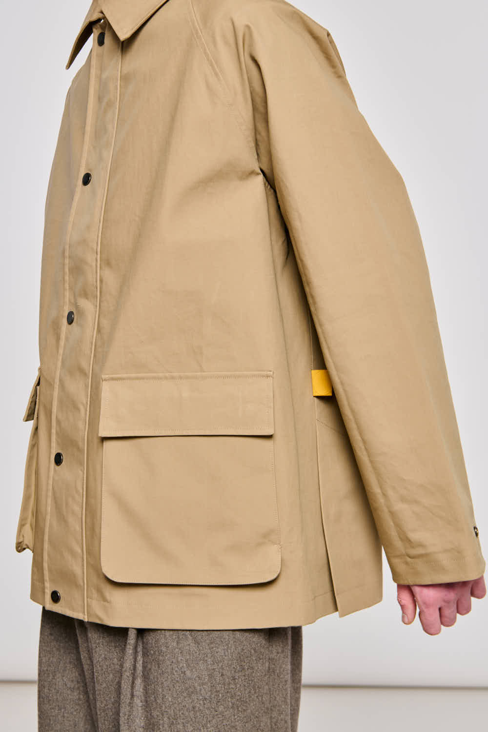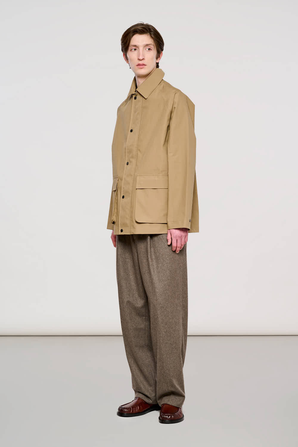 La 0120 Gent Field Jacket eleva il concetto di protezione urbana grazie all'utilizzo del pregiato tessuto Mackintosh. Questo materiale iconico conferisce al capo una struttura definita e una resistenza superiore agli agenti atmosferici, garantendo impermeabilità e riparo dal vento senza compromettere lo stile. Il design essenziale in color Beige è caratterizzato da linee pulite, bottoni a pressione a vista in metallo e ampie tasche funzionali, fondendo l'estetica utility con un'eleganza rigorosa e contemporanea. Un investimento durevole per chi cerca sostanza e forma in un unico capospalla.