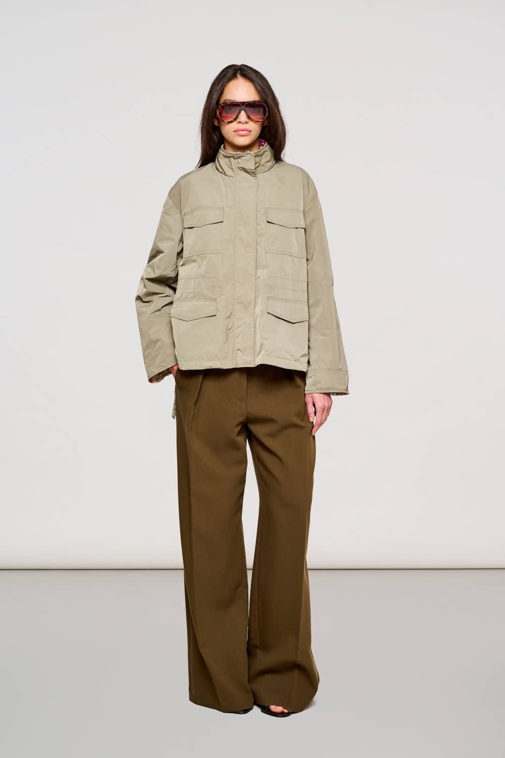 La 0600 Hackney Reversible Jacket è la sintesi perfetta tra funzionalità utility ed estetica romantica. Realizzata in tessuto Memory, offre due opzioni di stile in un unico capo: il lato esterno in Dark Olive presenta un design ispirato alle field jacket con quattro tasche frontali per un look urbano e grintoso. Girandola, si rivela l'interno con stampa Pink Print Flower, che trasforma il capo in un bomber femminile e giocoso. Il fit rilassato e il collo alto offrono comfort e protezione, rendendola ideale per affrontare la città con personalità.