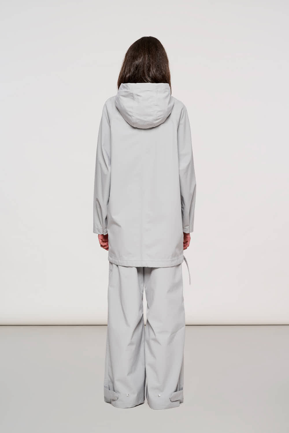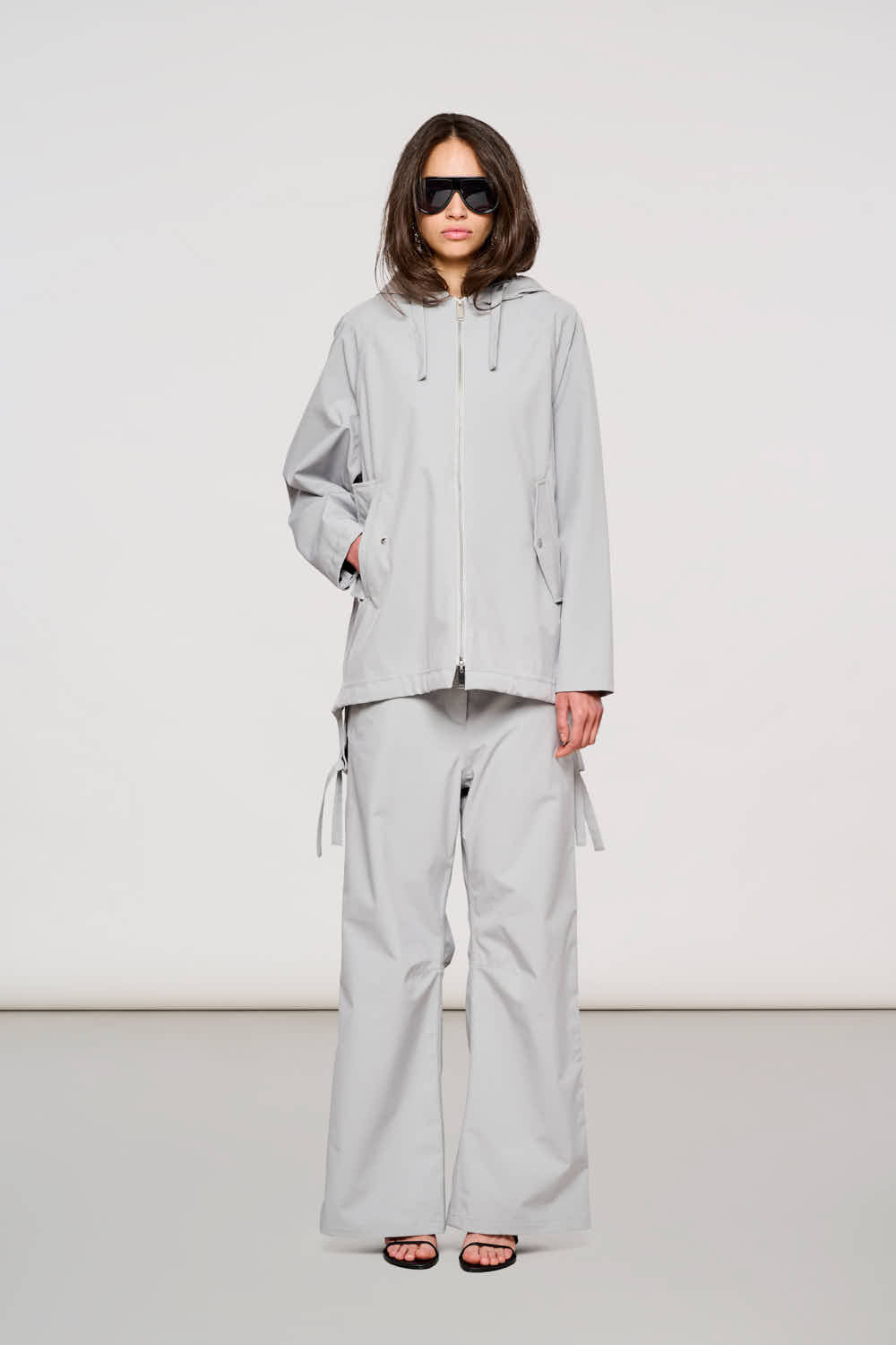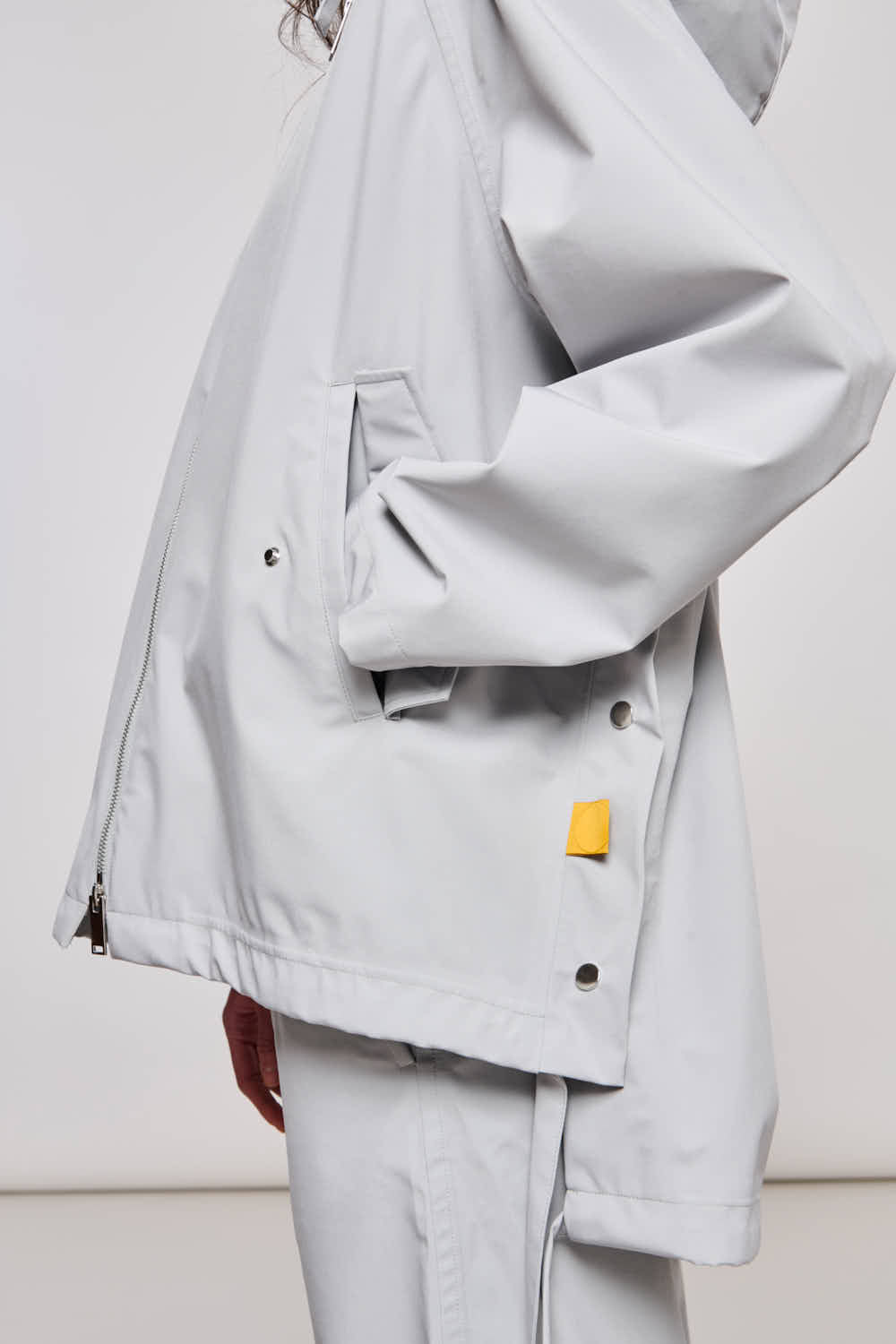La Wien Cape Jacket 1100 in Vapor Blue trasforma il capospalla in un elemento di design. Il tessuto "Two Layers" strutturato esalta la silhouette a cappa, mentre la tonalità azzurro ghiaccio dona un tocco luminoso e contemporaneo al guardaroba.
