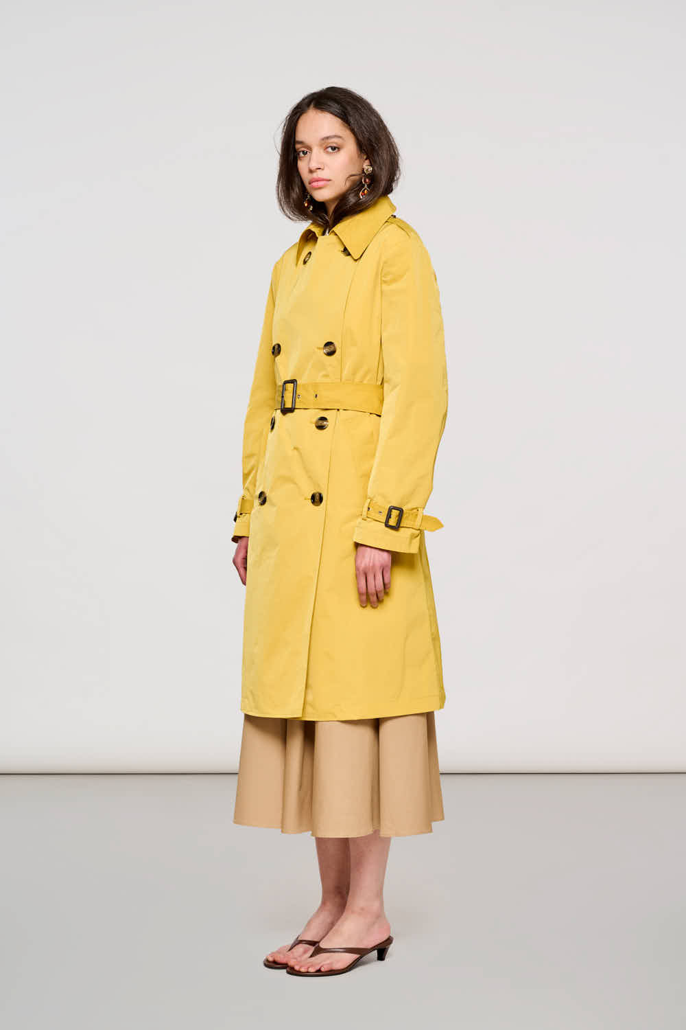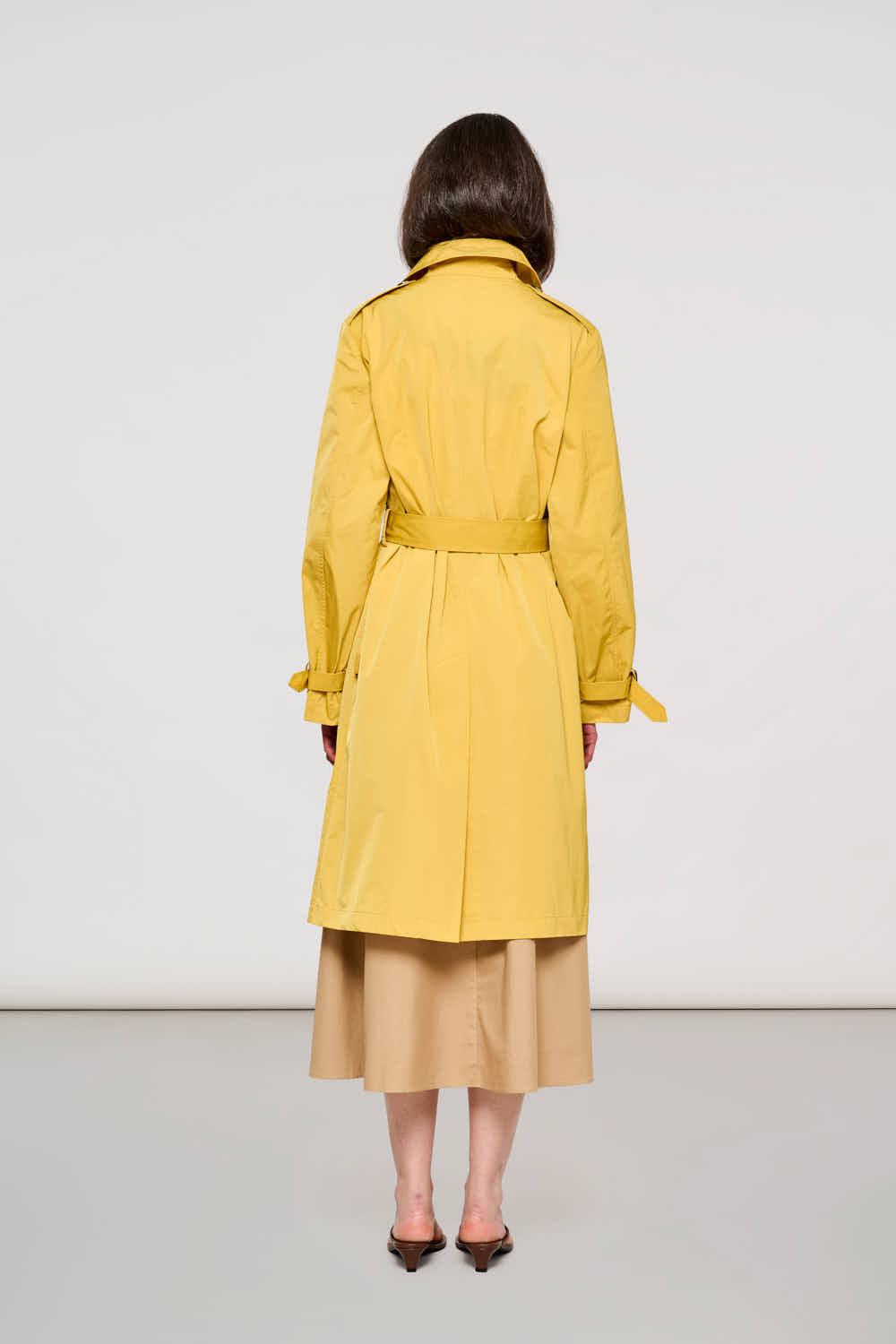 Il Brera Trench Coat 2500 in Ceylon Yellow rivisita l'iconico trench con un'esplosione di energia. Il tessuto tecnico "Memory" anti-piega esalta la tonalità giallo vibrante, creando un capospalla solare che illumina anche le giornate più grigie.