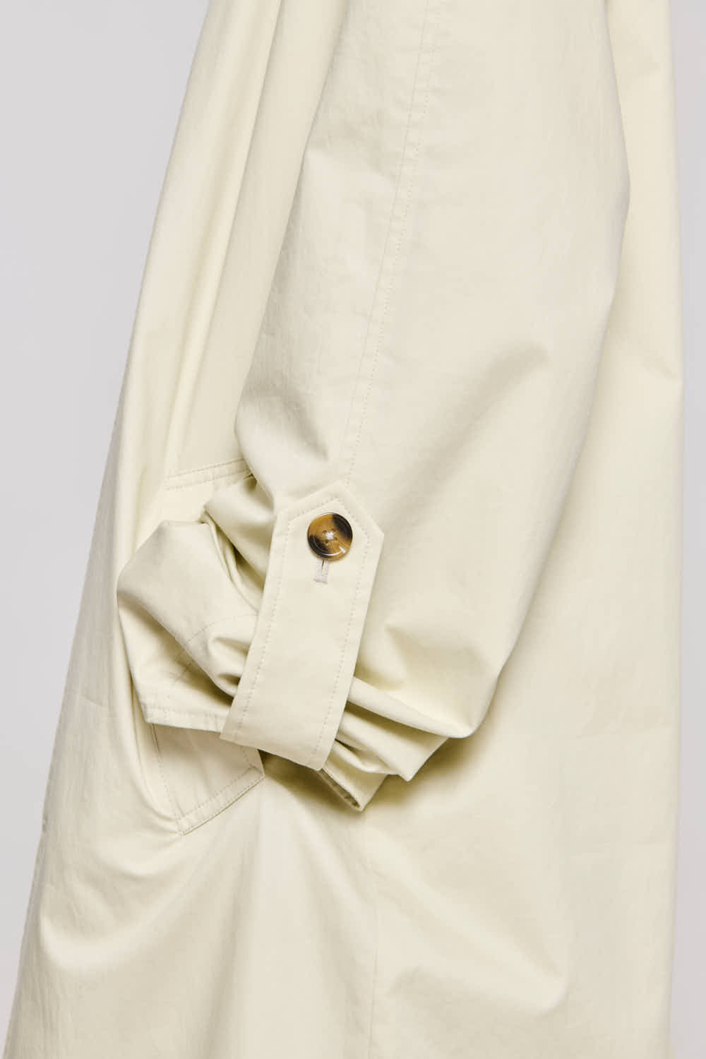 Il Brera Trench 5000 reinventa il classico impermeabile con un tocco romantico. Realizzato in morbido cotone smerigliato color Bone White, si distingue per le esclusive maniche arricciate che donano volume e personalità a una silhouette senza tempo.