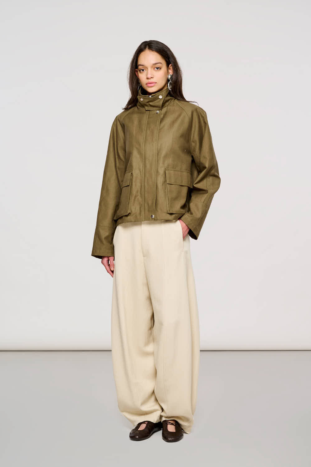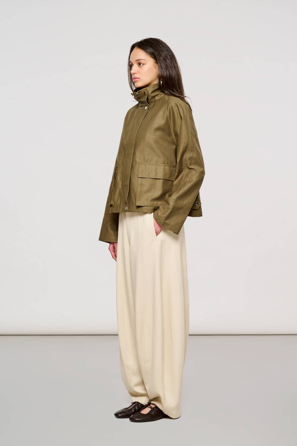 5600 Antwerp Boxy Jacket in Waxed Cotton Dark Olive