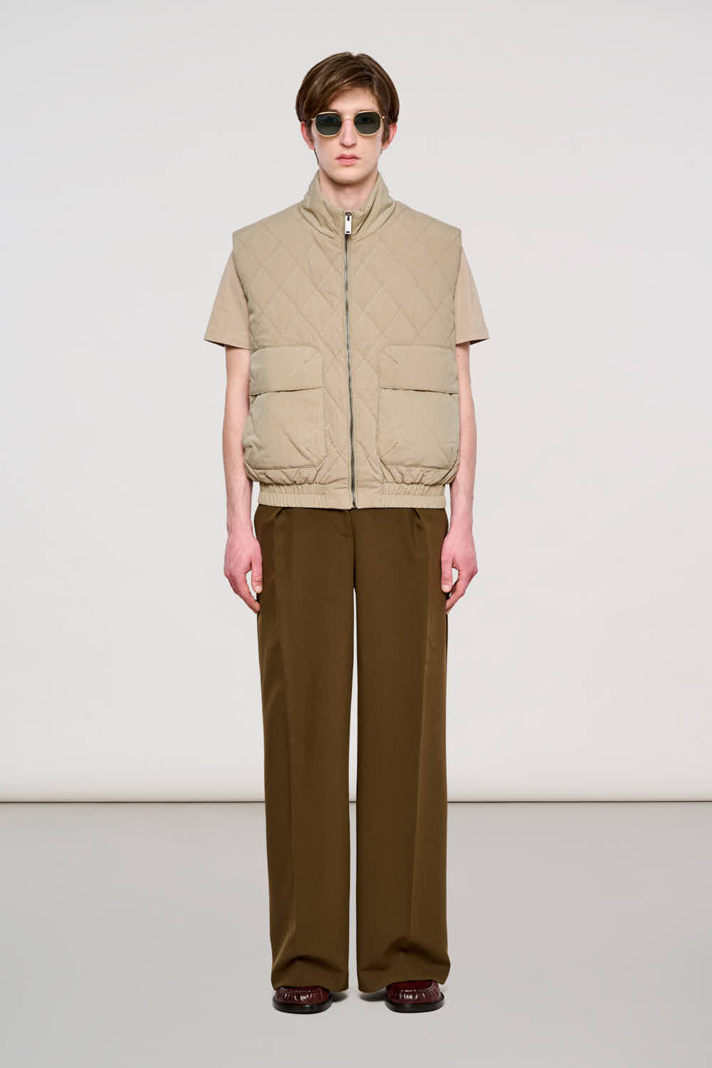 Il 6000 Camden Puffer Vest è il capo di layering essenziale per la mezza stagione, che unisce calore e un'estetica d'impatto. Realizzato in Shiny Nylon color Burnt Olive, questo gilet si distingue per la sua superficie lucida che cattura la luce e per l'elegante trapuntatura a rombi oversize. Il collo alto e l'imbottitura leggera ma isolante garantiscono comfort termico, mentre le ampie tasche frontali applicate aggiungono un tocco pratico e moderno. Perfetto da indossare sopra una felpa o sotto un cappotto per un gioco di volumi contemporaneo.