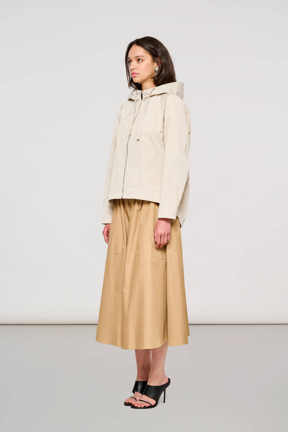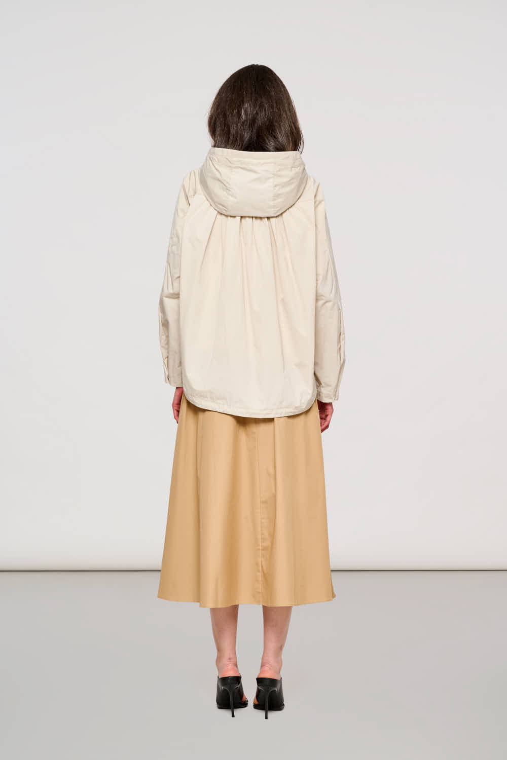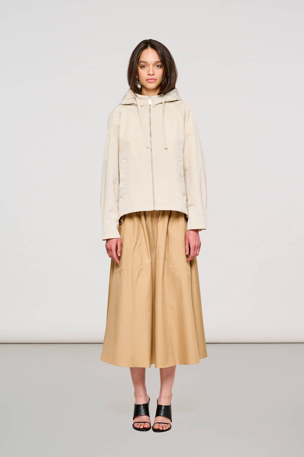 La Wien Zip Jacket 8000 reinterpreta il concetto di giacca a vento in chiave urbana. Realizzata in tessuto tecnico "Memory" color Bone White, questa giacca corta con cappuccio unisce protezione e stile rilassato per la mezza stagione.